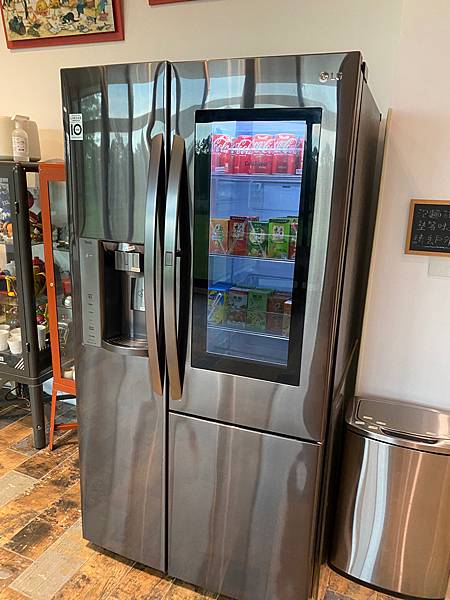 令人驚訝的是有一台好大的 LG 冰箱,裡面有每間房的專屬使用空間哦!